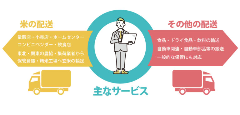 当社は、米の配送を中心に、さまざまな物流サービスを提供しています。